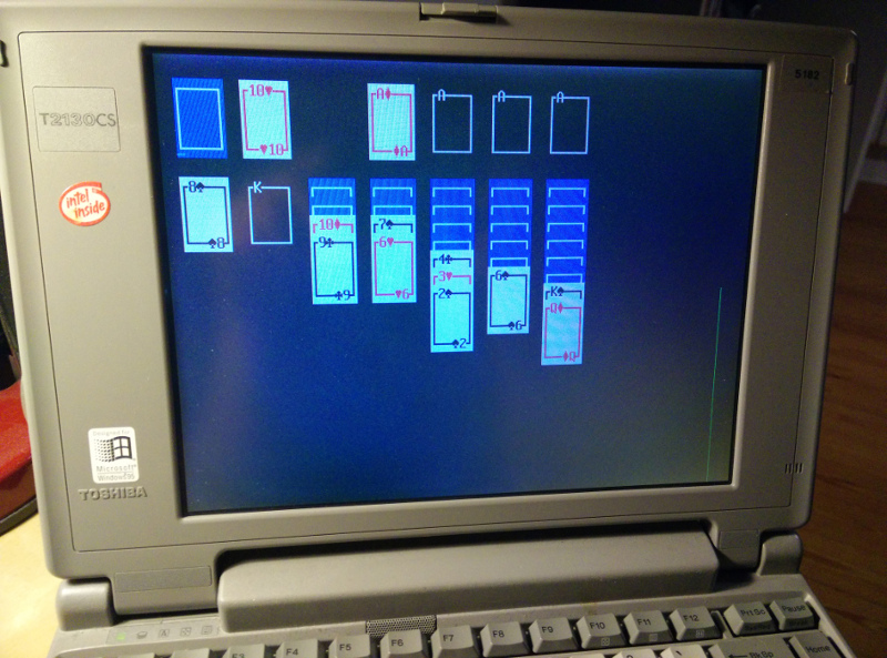 From Unicode to Code page 437: The default csol theme uses several Unicode characters to draw cards and suits. Since DOS doesn't support Unicode I created a new default theme based on Code page 437 which happens to include the exact same characters I was using in the Unicode theme.